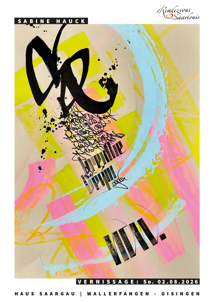 Am 7. November 2025 wird meine Einzelausstellung „BEYOND SOUL WRITING“ in den Räumen der Gemeinschaftspraxis Dr.med. Trautl Sticher-Rapp und Dr.med. Sabina Hartnack (Hüttenwerkstr. 3 | 66763 Dillingen) eröffnet. Die Vernissage beginnt um 19:00 Uhr. Ich freue mich auf Sie und Euch!